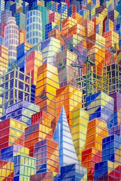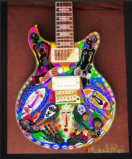Michael did many of guitar legend Carlos Santana’s album covers and the art on Santana’s guitars. He continues to work with Santana.